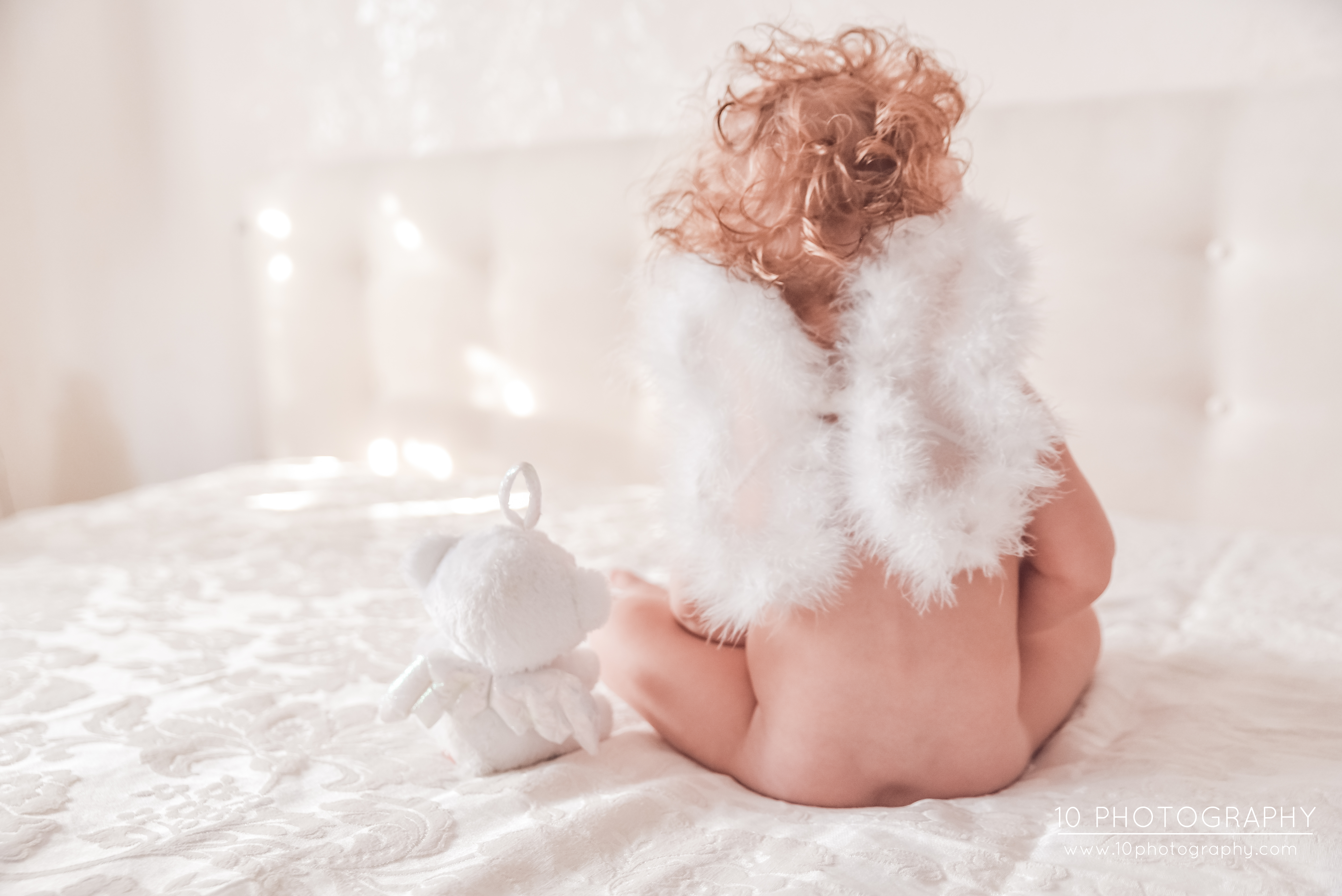 So, on the christening day, I went there earlier to take some funny pics of this blond-blue-eyed cupid and it was an hilarious time. Especially when he was trying to climb the bed, wearing those white fluffy wings and, of course, naked. Adorable!